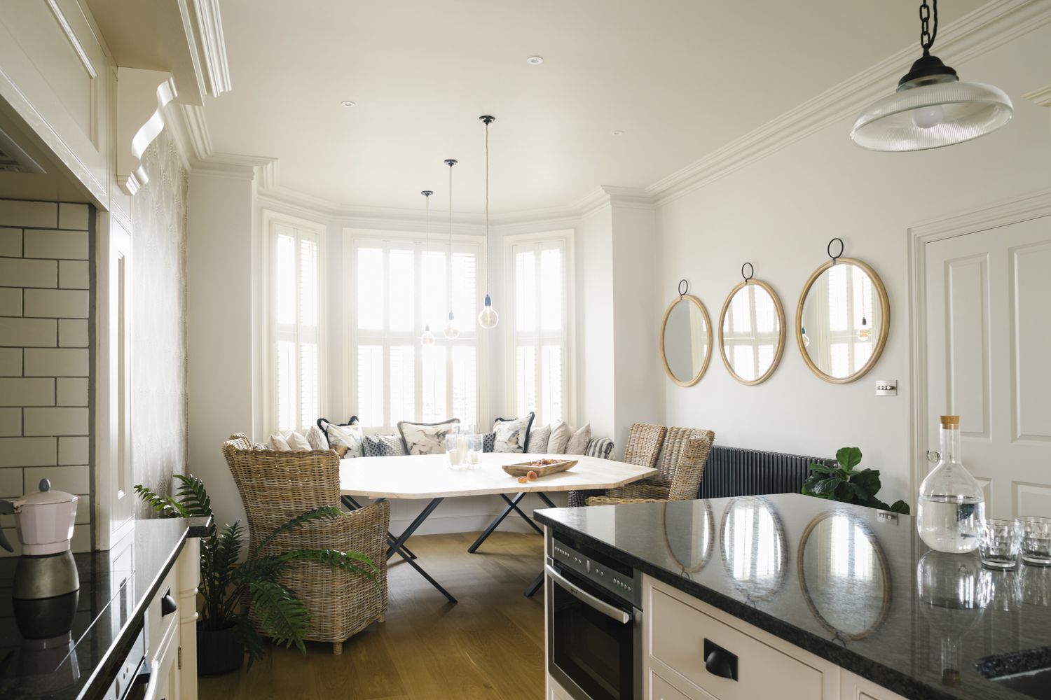 I redesigned the old playroom into a beautiful home cinema room. The kitchen/diner was refreshed and redecorated complete with a bespoke dining table better suited to expanding family gatherings.