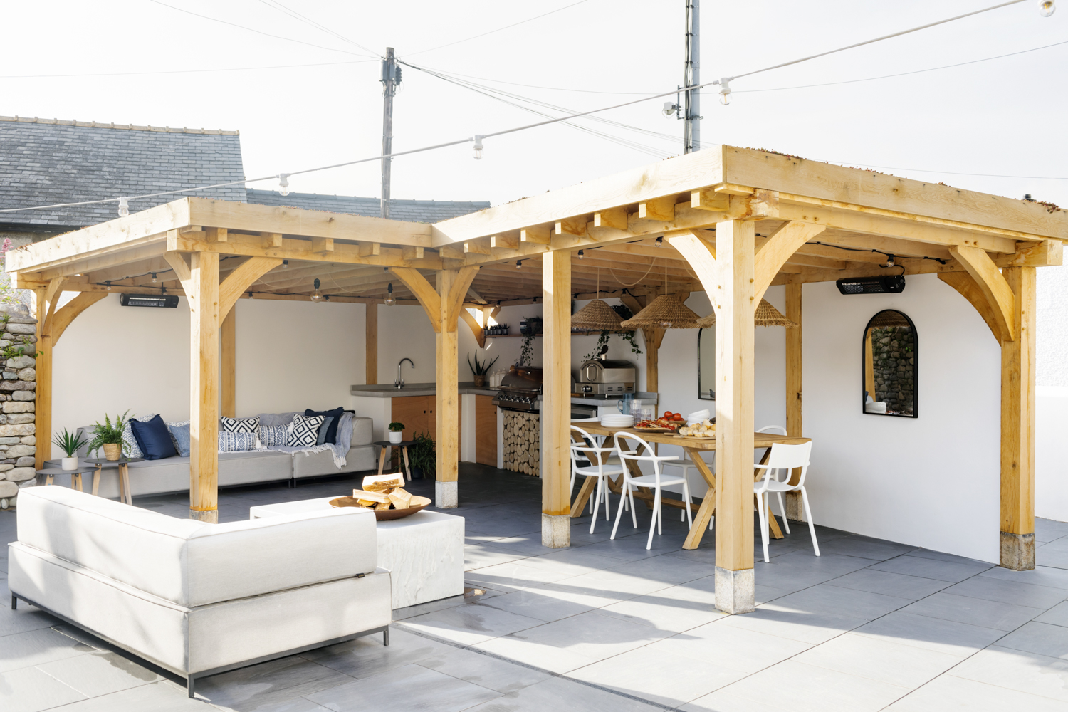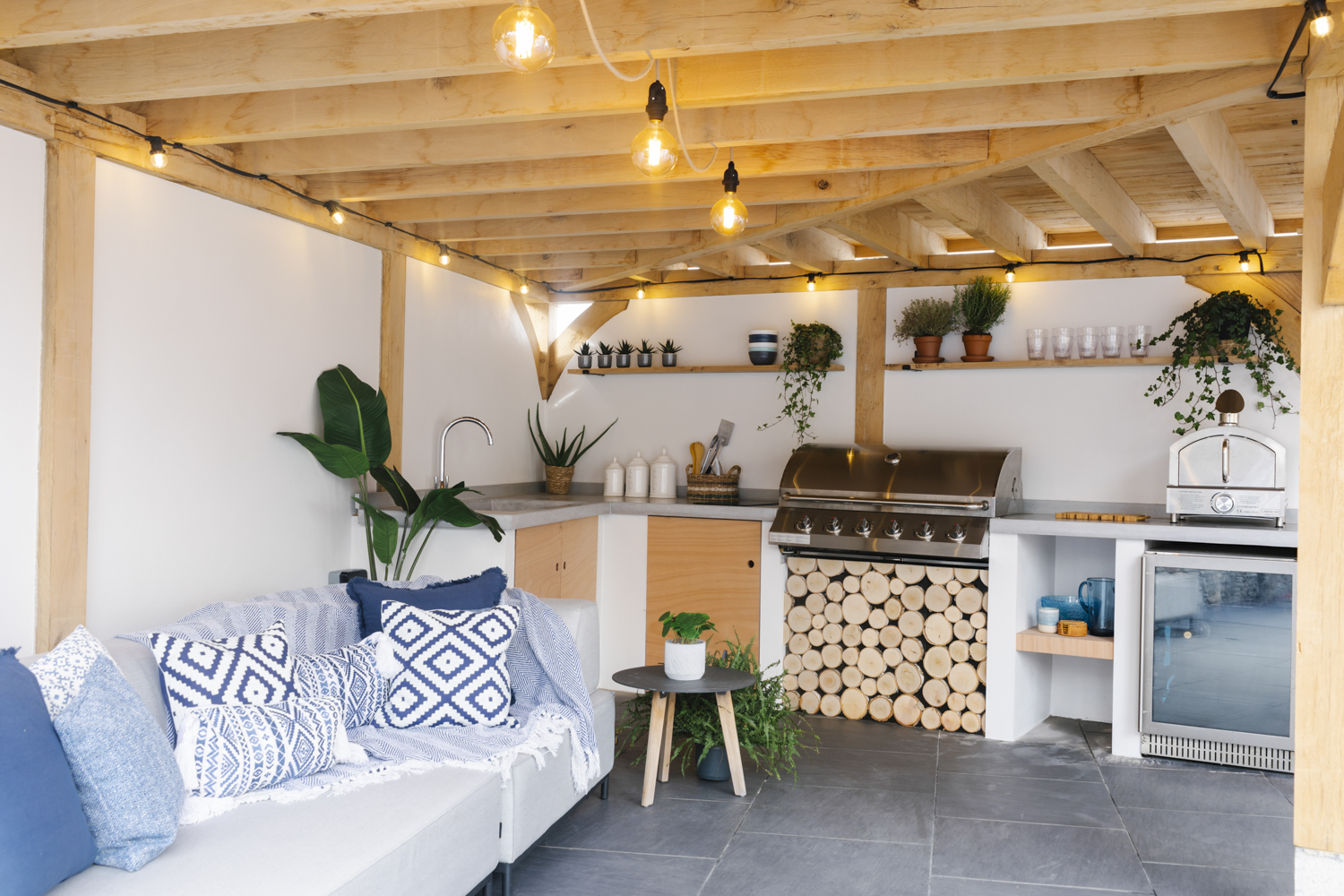 The family room was reconfigured and we added a log burner for those cosy winters evenings. The crowning glory of the re design was the garden area. A bespoke oak outdoor kitchen/dining area has created a beautiful focal point and social area for entertainment and relaxation.